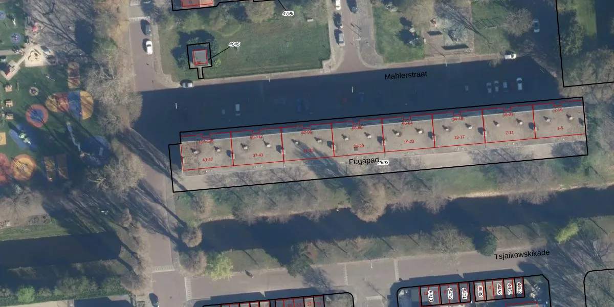 Fugapad 33 is gelegen op kadastraal perceel LDN01O2693. Deze kadastrale aanduiding is uniek en wordt gebruikt door het Kadaster om eigendomsrechten en andere zakelijke rechten vast te leggen. Het perceel maakt onderdeel uit van de kadastrale gemeente Leiden.