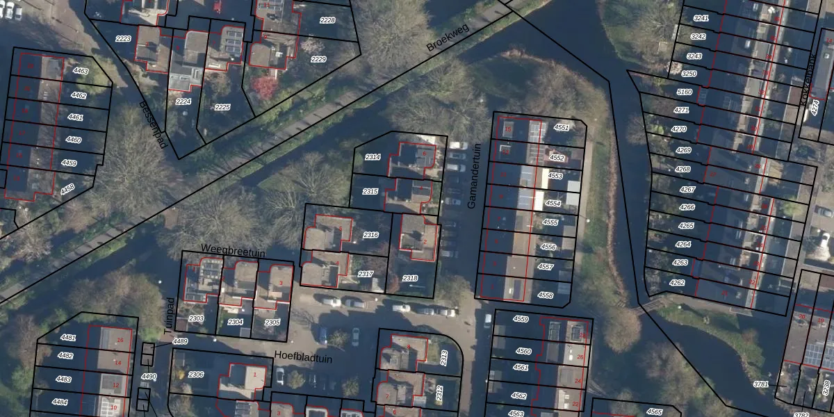 Gebruik de zoekbalk of klik op een perceel voor informatie over de adressen binnen dit perceel.