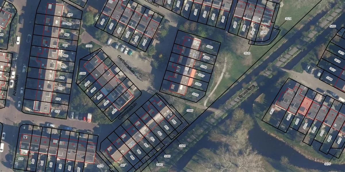Gebruik de zoekbalk of klik op een perceel voor informatie over de adressen binnen dit perceel.
