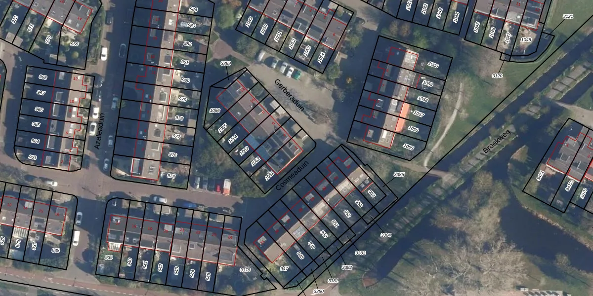 Gebruik de zoekbalk of klik op een perceel voor informatie over de adressen binnen dit perceel.