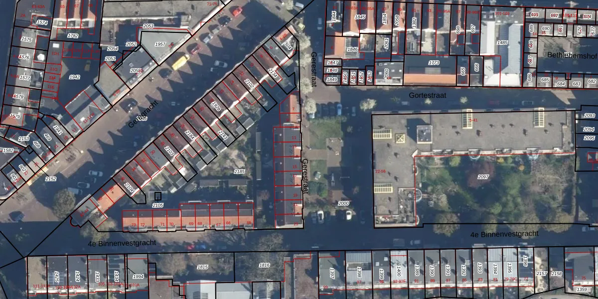 Gerestraat 13 is gelegen op kadastraal perceel LDN01E2185. Deze kadastrale aanduiding is uniek en wordt gebruikt door het Kadaster om eigendomsrechten en andere zakelijke rechten vast te leggen. Het perceel maakt onderdeel uit van de kadastrale gemeente Leiden.