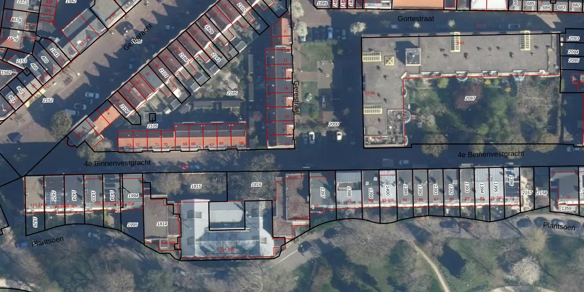 Gerestraat 23 is gelegen op kadastraal perceel LDN01E2185. Deze kadastrale aanduiding is uniek en wordt gebruikt door het Kadaster om eigendomsrechten en andere zakelijke rechten vast te leggen. Het perceel maakt onderdeel uit van de kadastrale gemeente Leiden.