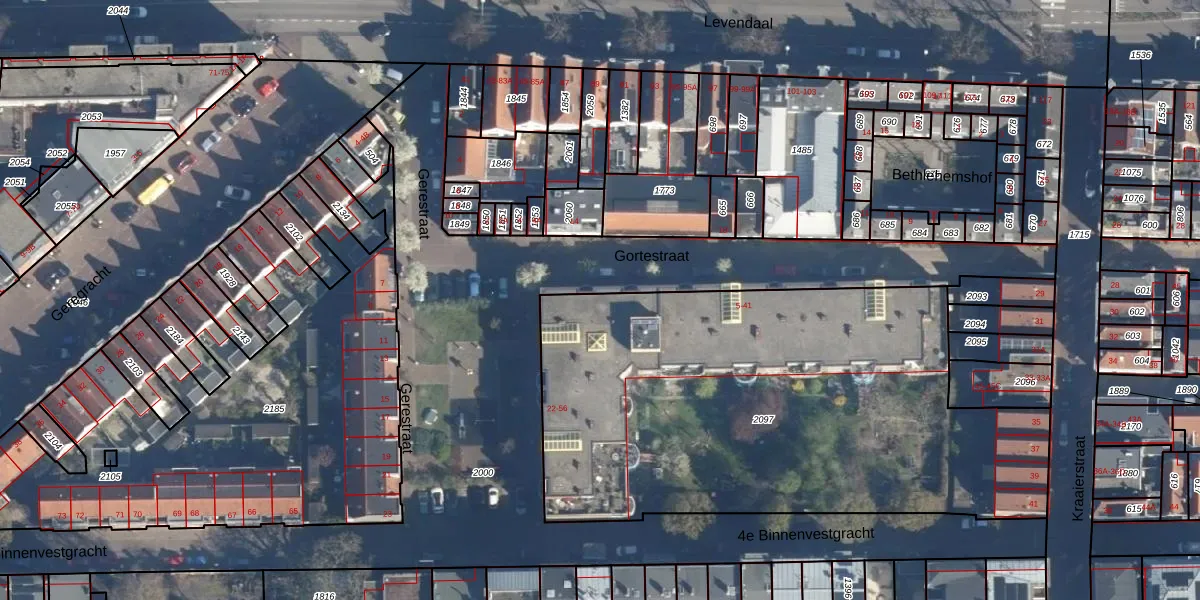 Gortestraat 7 is gelegen op kadastraal perceel LDN01E2097. Deze kadastrale aanduiding is uniek en wordt gebruikt door het Kadaster om eigendomsrechten en andere zakelijke rechten vast te leggen. Het perceel maakt onderdeel uit van de kadastrale gemeente Leiden.