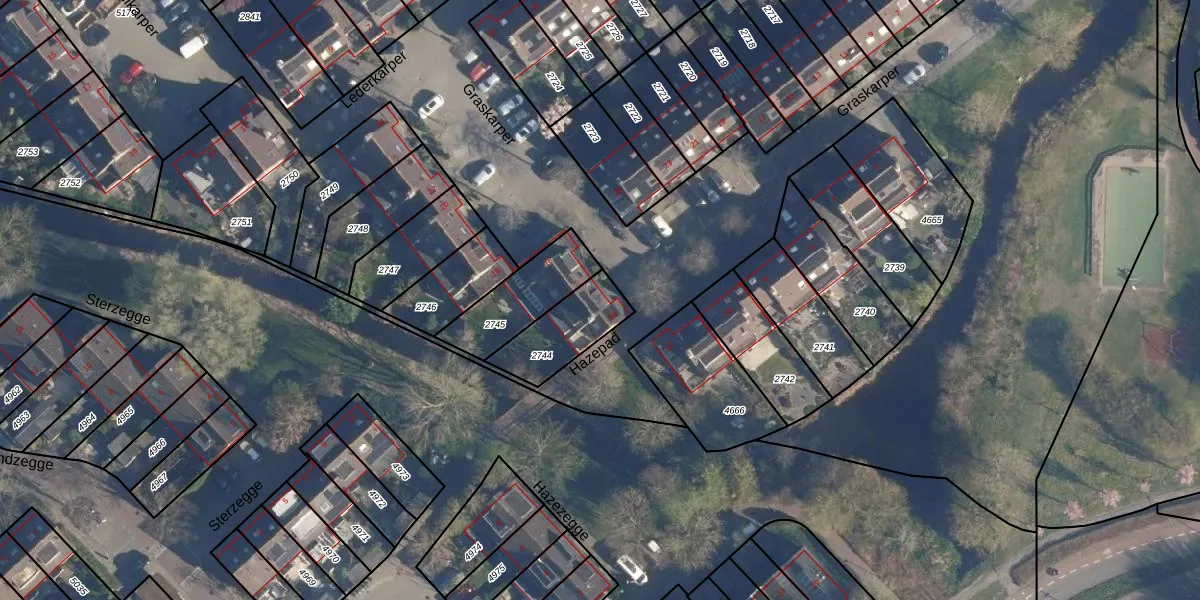 Gebruik de zoekbalk of klik op een perceel voor informatie over de adressen binnen dit perceel.