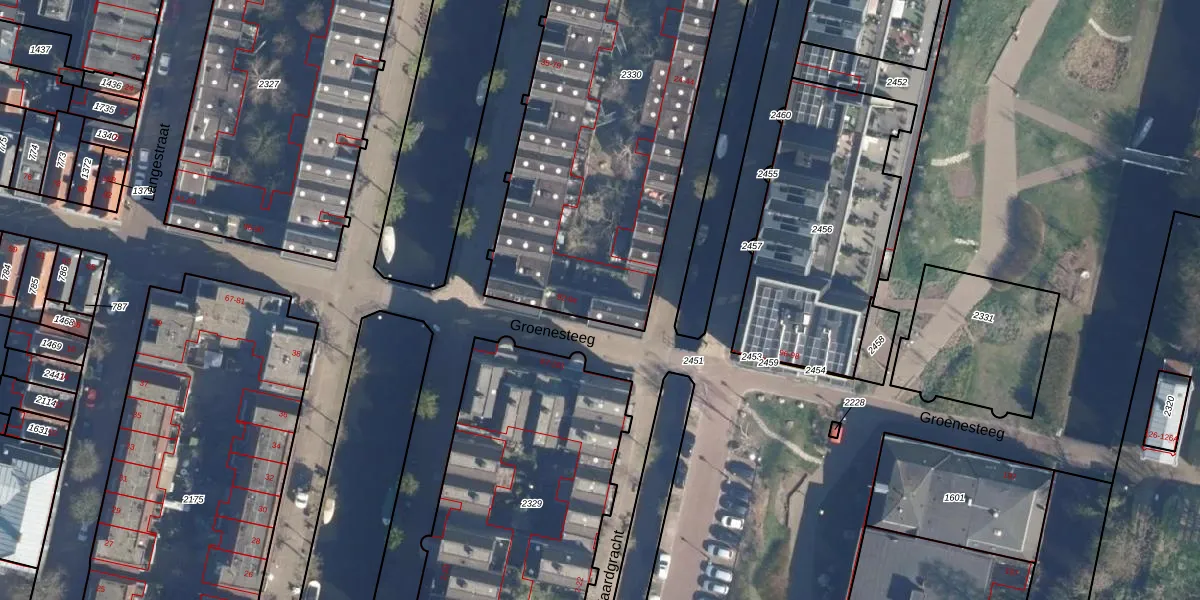 Het perceel waarop Groenesteeg 94 staat heeft een oppervlakte van 2190 m². Dit is een zeer groot perceel. De perceeloppervlakte wordt geregistreerd door het Kadaster. Gedetailleerde informatie over de maten van dit perceel kunt u vinden in het rapport Kadastrale kaart met maatvoering van Groenesteeg 94.