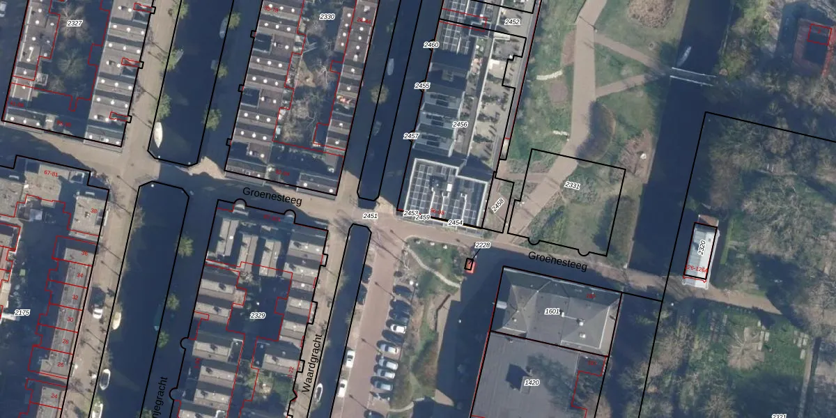 Groenesteeg 96 is gelegen op kadastraal perceel LDN01C2456. Deze kadastrale aanduiding is uniek en wordt gebruikt door het Kadaster om eigendomsrechten en andere zakelijke rechten vast te leggen. Het perceel maakt onderdeel uit van de kadastrale gemeente Leiden.