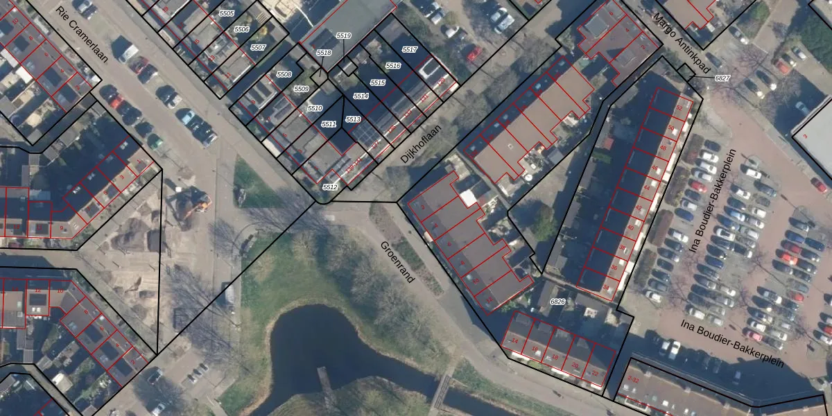 Het perceel waarop Groenrand 2 staat heeft een oppervlakte van 3470 m². Dit is een zeer groot perceel. De perceeloppervlakte wordt geregistreerd door het Kadaster. Gedetailleerde informatie over de maten van dit perceel kunt u vinden in het rapport Kadastrale kaart met maatvoering van Groenrand 2.