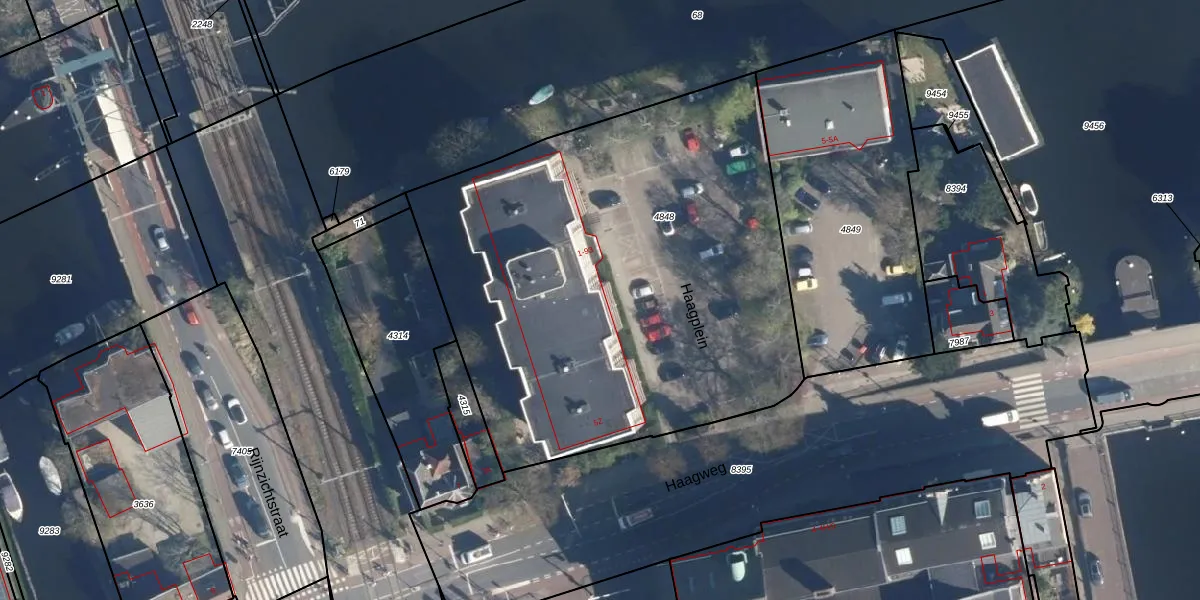 Het perceel waarop Haagplein 7 staat heeft een oppervlakte van 2967 m². Dit is een zeer groot perceel. De perceeloppervlakte wordt geregistreerd door het Kadaster. Gedetailleerde informatie over de maten van dit perceel kunt u vinden in het rapport Kadastrale kaart met maatvoering van Haagplein 7.