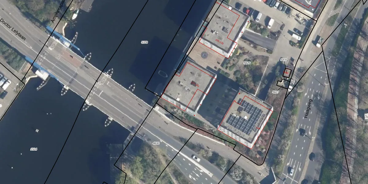 Het perceel waarop het adres ligt is LDN01-O-5626. De afkorting 'LDN01' staat voor kadastrale gemeente Leiden. Het perceel is met 4775 m² relatief groot. Het gemiddelde ligt in de kadastrale gemeente Leiden op 703,94 m². De grootste perceeloppervlakte in de kadastrale gemeente is 51,8 ha. De kleinste oppervlakte bedraagt 0 m². Op het perceel liggen in totaal 22 adressen. De huidige grenzen van het perceel zijn digitaal in de Basisregistratie Kadaster (BRK) geregistreerd op 28-08-2023.
