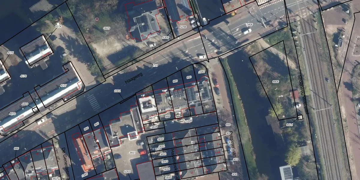Haagweg 18-A is gelegen op kadastraal perceel LDN01O889. Deze kadastrale aanduiding is uniek en wordt gebruikt door het Kadaster om eigendomsrechten en andere zakelijke rechten vast te leggen. Het perceel maakt onderdeel uit van de kadastrale gemeente Leiden.