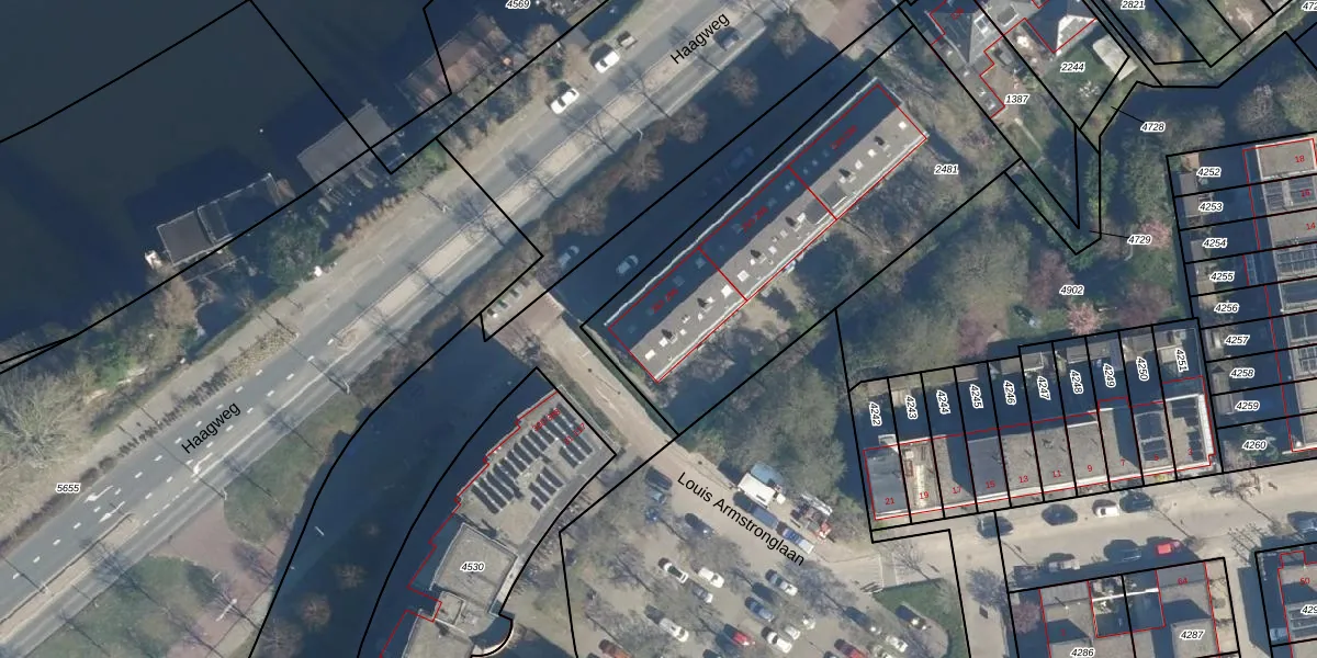 Het perceel waarop het adres ligt is LDN01-O-2481. De afkorting 'LDN01' staat voor kadastrale gemeente Leiden. De gemiddelde perceeloppervlakte in de kadastrale gemeente Leiden is 703,94 m². Dit perceel is met zijn 1600 m² dus groter dan gemiddeld. Het kleinste perceel in de kadastrale gemeente is 0 m² groot. De grootste perceeloppervlakte is 51,8 ha. Op het perceel liggen in totaal 30 adressen. De huidige grenzen van het perceel zijn digitaal in de Basisregistratie Kadaster (BRK) geregistreerd op 27-03-2007.