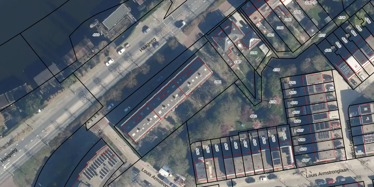 Het adres is gelegen op perceel 2481 in de sectie O en de kadastrale gemeente Leiden. De kadastrale aanduiding is aldus LDN01-O-2481. Het perceel is met 1600 m² relatief groot. Het gemiddelde ligt in de kadastrale gemeente Leiden op 703,94 m². De grootste perceeloppervlakte in de kadastrale gemeente is 51,8 ha. De kleinste oppervlakte bedraagt 0 m². Op het perceel zijn 30 adressen aanwezig. De laatste wijziging in het de Basisregistratie Kadaster (BRK) was op 27-03-2007.