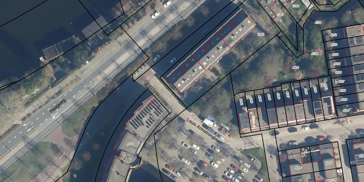 Het adres is gelegen op perceel 2481 in de sectie O en de kadastrale gemeente Leiden. De kadastrale aanduiding is aldus LDN01-O-2481. Het perceel is met 1600 m² relatief groot. Het gemiddelde ligt in de kadastrale gemeente Leiden op 703,94 m². De grootste perceeloppervlakte in de kadastrale gemeente is 51,8 ha. De kleinste oppervlakte bedraagt 0 m². Op het perceel liggen in totaal 30 adressen. De huidige grenzen van het perceel zijn digitaal in de Basisregistratie Kadaster (BRK) geregistreerd op 27-03-2007.