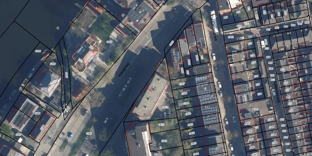 Haagweg 54 is gelegen op kadastraal perceel LDN01O3613. Deze kadastrale aanduiding is uniek en wordt gebruikt door het Kadaster om eigendomsrechten en andere zakelijke rechten vast te leggen. Het perceel maakt onderdeel uit van de kadastrale gemeente Leiden.