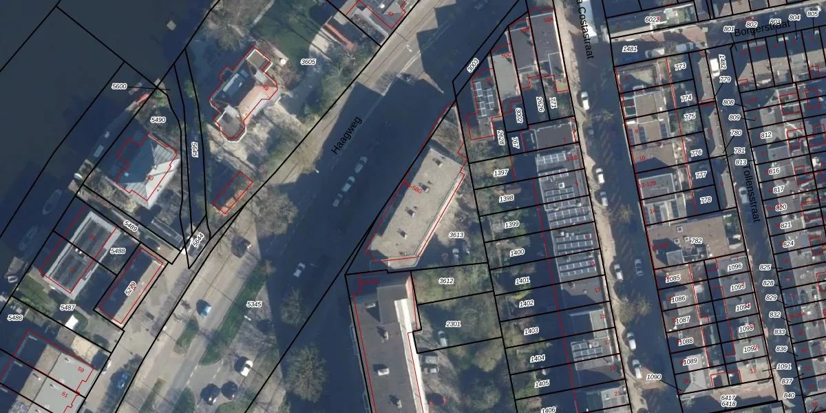 Haagweg 56-B is gelegen op kadastraal perceel LDN01O3613. Deze kadastrale aanduiding is uniek en wordt gebruikt door het Kadaster om eigendomsrechten en andere zakelijke rechten vast te leggen. Het perceel maakt onderdeel uit van de kadastrale gemeente Leiden.
