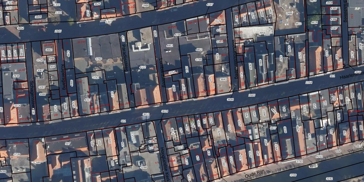 Het perceel waarop het adres ligt is LDN01-H-1816. De afkorting 'LDN01' staat voor kadastrale gemeente Leiden. Het perceel is kleiner dan gemiddeld in Leiden. Het perceel is 64 m² groot, terwijl het gemiddelde ligt op 703,94 m². Het grootste perceel in de kadastrale gemeente is 51,8 ha. Het kleinste perceel heeft een oppervlakte van 0 m². Op het perceel zijn 4 adressen aanwezig. De huidige grenzen van het perceel zijn digitaal in de Basisregistratie Kadaster (BRK) geregistreerd op 06-02-1998.