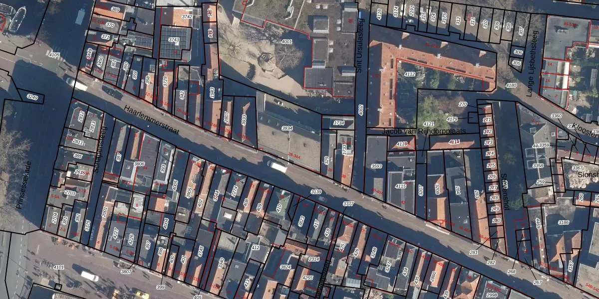 Het perceel waarop Haarlemmerstraat 30-B staat heeft een oppervlakte van 440 m². Dit is een groot perceel. De perceeloppervlakte wordt geregistreerd door het Kadaster. Gedetailleerde informatie over de maten van dit perceel kunt u vinden in het rapport Kadastrale kaart met maatvoering van Haarlemmerstraat 30-B.