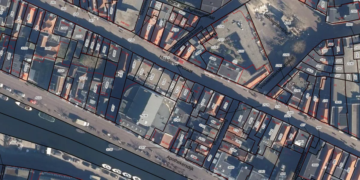 Het perceel waarop het adres ligt is LDN01-H-3110. De afkorting 'LDN01' staat voor kadastrale gemeente Leiden. Het perceel is 68 m² groot. Dat is kleiner dan de gemiddelde perceeloppervlakte in Leiden, dat op 703,94 m² ligt. De grootste perceeloppervlakte in de kadastrale gemeente is 51,8 ha. De kleinste oppervlakte bedraagt 0 m². Er zijn 6 adressen aanwezig op het perceel. De huidige grenzen van het perceel zijn digitaal in de Basisregistratie Kadaster (BRK) geregistreerd op 30-11-1998.