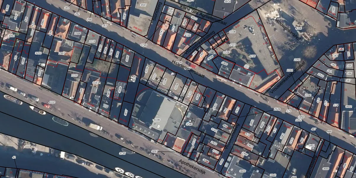 Het perceel waarop het adres ligt is LDN01-H-3109. De afkorting 'LDN01' staat voor kadastrale gemeente Leiden. Het perceel is 93 m² groot. Dat is kleiner dan de gemiddelde perceeloppervlakte in Leiden, dat op 703,94 m² ligt. De grootste perceeloppervlakte in de kadastrale gemeente is 51,8 ha. De kleinste oppervlakte bedraagt 0 m². Er zijn 10 adressen aanwezig op het perceel. De laatste wijziging in het de Basisregistratie Kadaster (BRK) was op 30-11-1998.