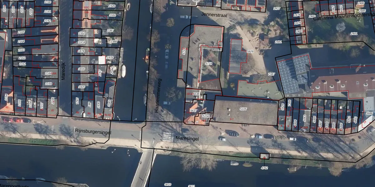 Het adres is gelegen op perceel 5638 in de sectie K en de kadastrale gemeente Leiden. De kadastrale aanduiding is aldus LDN01-K-5638. Het perceel is kleiner dan gemiddeld in Leiden. Het perceel is 102 m² groot, terwijl het gemiddelde ligt op 703,94 m². Het kleinste perceel in de kadastrale gemeente is 0 m² groot. De grootste perceeloppervlakte is 51,8 ha. Er zijn 4 adressen aanwezig op het perceel. In de Basisregistratie Kadaster (BRK) werden de grenzen van het perceel geregistreerd op 27-08-2003.