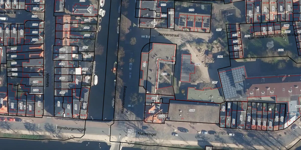 Het adres is gelegen op perceel 5718 in de sectie K en de kadastrale gemeente Leiden. De kadastrale aanduiding is aldus LDN01-K-5718. Het perceel is kleiner dan gemiddeld in Leiden. Het perceel is 600 m² groot, terwijl het gemiddelde ligt op 703,99 m². Het kleinste perceel in de kadastrale gemeente is 0 m² groot. De grootste perceeloppervlakte is 51,8 ha. Op het perceel zijn 10 adressen aanwezig. De laatste wijziging in het de Basisregistratie Kadaster (BRK) was op 27-08-2003.