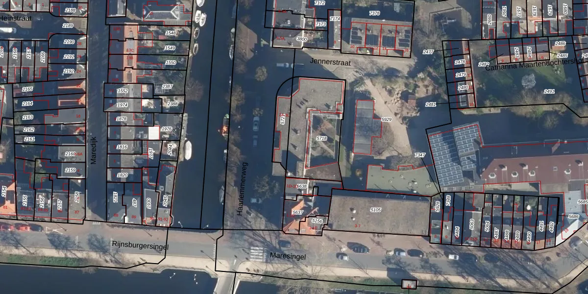 Het adres is gelegen op perceel 5718 in de sectie K en de kadastrale gemeente Leiden. De kadastrale aanduiding is aldus LDN01-K-5718. Het perceel is kleiner dan gemiddeld in Leiden. Het perceel is 600 m² groot, terwijl het gemiddelde ligt op 703,99 m². Het kleinste perceel in de kadastrale gemeente is 0 m² groot. De grootste perceeloppervlakte is 51,8 ha. Op het perceel zijn 10 adressen aanwezig. In de Basisregistratie Kadaster (BRK) werden de grenzen van het perceel geregistreerd op 27-08-2003.