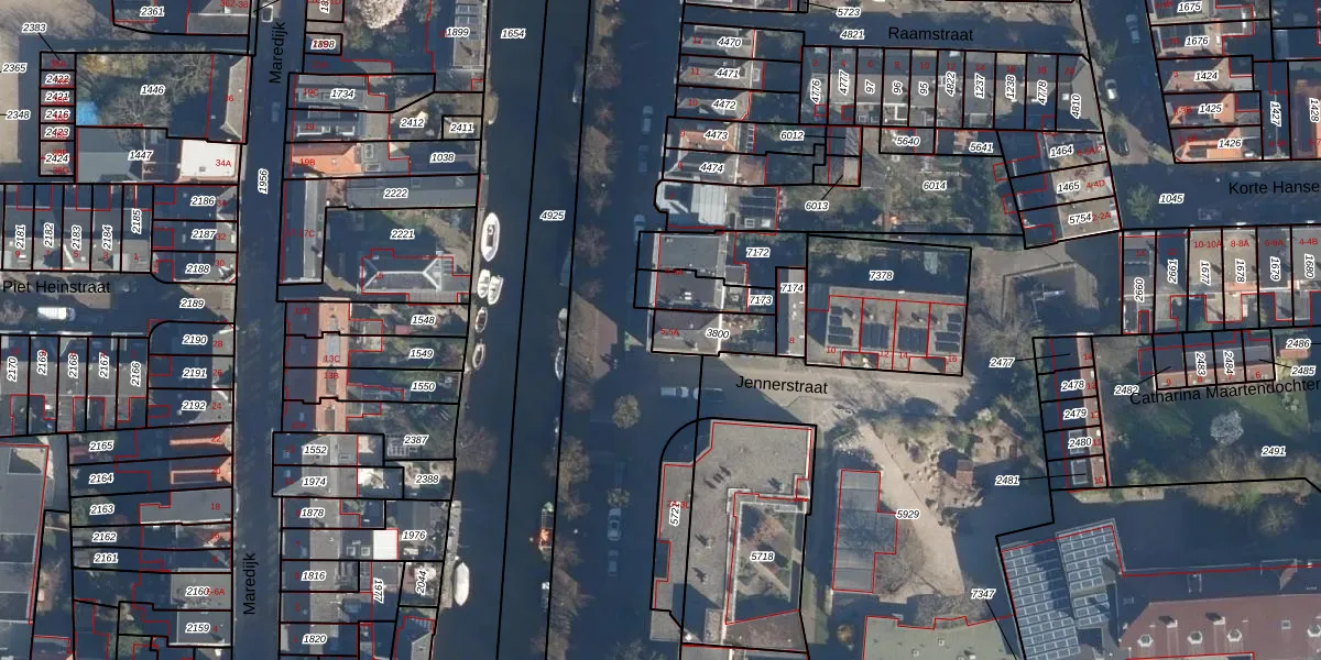 Het adres is gelegen op perceel 3800 in de sectie K en de kadastrale gemeente Leiden. De kadastrale aanduiding is aldus LDN01-K-3800. Het perceel is kleiner dan gemiddeld in Leiden. Het perceel is 117 m² groot, terwijl het gemiddelde ligt op 703,94 m². Het kleinste perceel in de kadastrale gemeente is 0 m² groot. De grootste perceeloppervlakte is 51,8 ha. Op het perceel liggen in totaal 2 adressen. De huidige grenzen van het perceel zijn digitaal in de Basisregistratie Kadaster (BRK) geregistreerd op 24-08-2017.