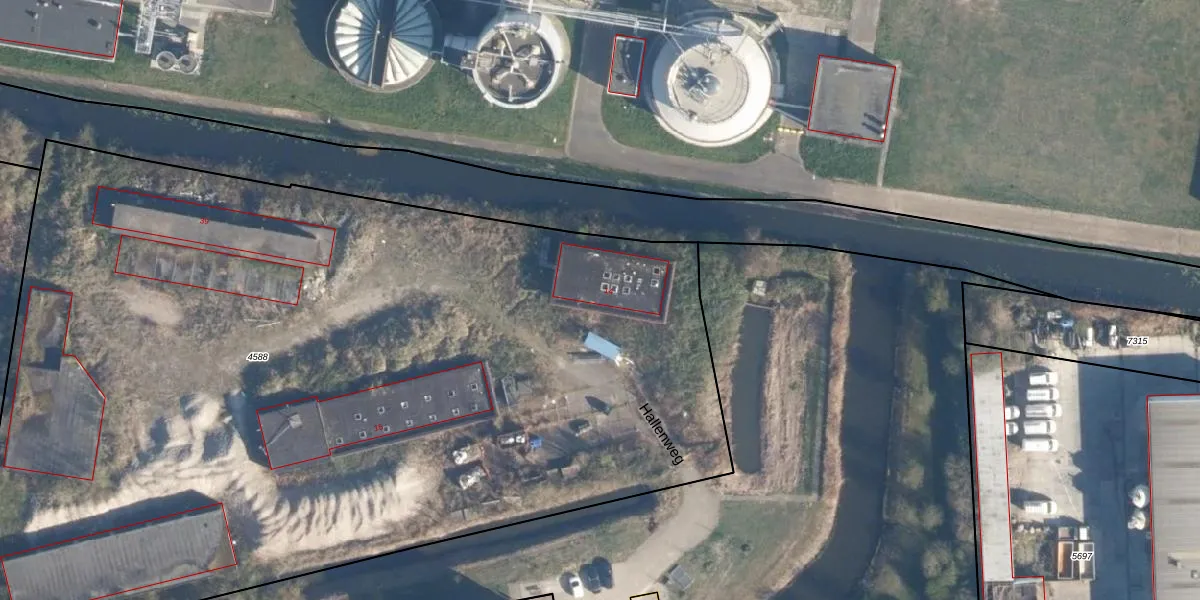 Het perceel waarop Hallenweg 14 staat heeft een oppervlakte van 7240 m². Dit is een zeer groot perceel. De perceeloppervlakte wordt geregistreerd door het Kadaster. Gedetailleerde informatie over de maten van dit perceel kunt u vinden in het rapport Kadastrale kaart met maatvoering van Hallenweg 14.