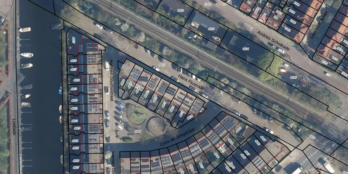 Hans Flustraat 12 is gelegen op kadastraal perceel LDN01O4811. Deze kadastrale aanduiding is uniek en wordt gebruikt door het Kadaster om eigendomsrechten en andere zakelijke rechten vast te leggen. Het perceel maakt onderdeel uit van de kadastrale gemeente Leiden.