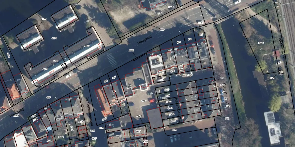 Het perceel waarop het adres ligt is LDN01-O-3417. De afkorting 'LDN01' staat voor kadastrale gemeente Leiden. De oppervlakte van het perceel is 992 m². Dat is groter dan gemiddeld in Leiden, waar de gemiddelde perceeloppervlakte op 703,94 m² ligt. Het kleinste perceel in de kadastrale gemeente is 0 m² groot. De grootste perceeloppervlakte is 51,8 ha. Op het perceel zijn 18 adressen aanwezig. De laatste wijziging in het de Basisregistratie Kadaster (BRK) was op 27-03-2007.