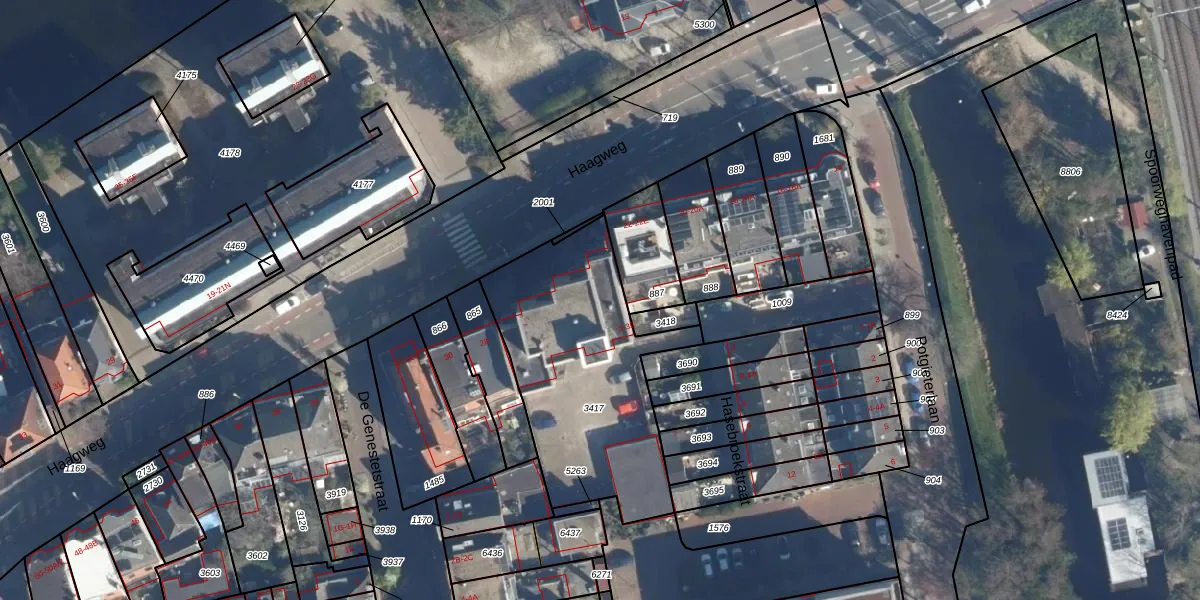 Het perceel waarop het adres ligt is LDN01-O-3417. De afkorting 'LDN01' staat voor kadastrale gemeente Leiden. De oppervlakte van het perceel is 992 m². Dat is groter dan gemiddeld in Leiden, waar de gemiddelde perceeloppervlakte op 703,94 m² ligt. Het kleinste perceel in de kadastrale gemeente is 0 m² groot. De grootste perceeloppervlakte is 51,8 ha. Op het perceel liggen in totaal 18 adressen. In de Basisregistratie Kadaster (BRK) werden de grenzen van het perceel geregistreerd op 27-03-2007.