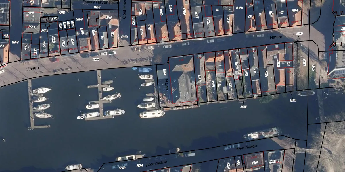 Het perceel waarop Haven 1 staat heeft een oppervlakte van 614 m². Dit is een groot perceel. De perceeloppervlakte wordt geregistreerd door het Kadaster. Gedetailleerde informatie over de maten van dit perceel kunt u vinden in het rapport Kadastrale kaart met maatvoering van Haven 1.
