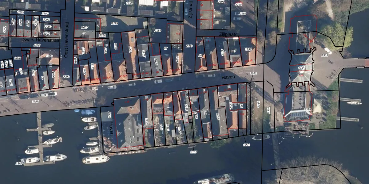 Het perceel waarop Haven 13 staat heeft een oppervlakte van 142 m². Dit is een middelgroot perceel. De perceeloppervlakte wordt geregistreerd door het Kadaster. Gedetailleerde informatie over de maten van dit perceel kunt u vinden in het rapport Kadastrale kaart met maatvoering van Haven 13.