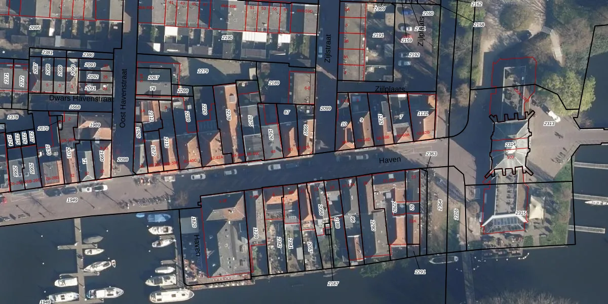 Het perceel waarop Haven 52 staat heeft een oppervlakte van 88 m². Dit is een klein perceel. De perceeloppervlakte wordt geregistreerd door het Kadaster. Gedetailleerde informatie over de maten van dit perceel kunt u vinden in het rapport Kadastrale kaart met maatvoering van Haven 52.