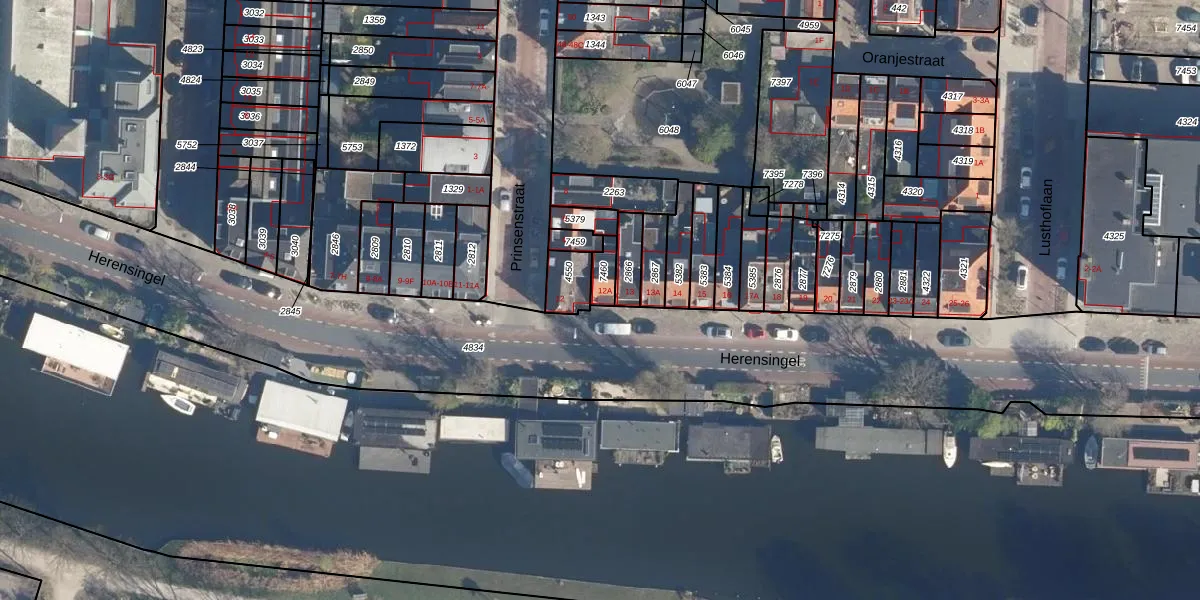 Het perceel waarop Herensingel 12-A staat heeft een oppervlakte van 43 m². Dit is een klein perceel. De perceeloppervlakte wordt geregistreerd door het Kadaster. Gedetailleerde informatie over de maten van dit perceel kunt u vinden in het rapport Kadastrale kaart met maatvoering van Herensingel 12-A.