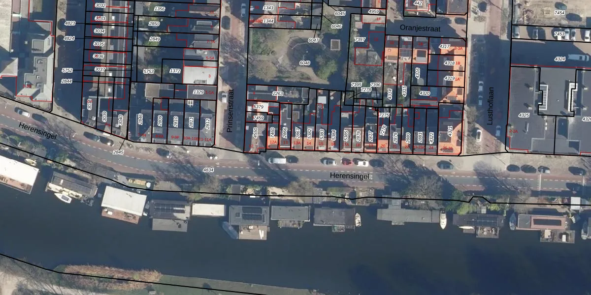 Gebruik de zoekbalk of klik op een perceel voor informatie over de adressen binnen dit perceel.