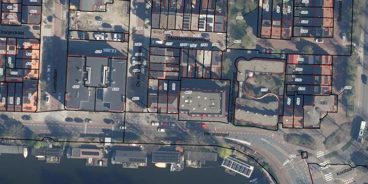 Het perceel waarop Herensingel 30-C staat heeft een oppervlakte van 627 m². Dit is een groot perceel. De perceeloppervlakte wordt geregistreerd door het Kadaster. Gedetailleerde informatie over de maten van dit perceel kunt u vinden in het rapport Kadastrale kaart met maatvoering van Herensingel 30-C.
