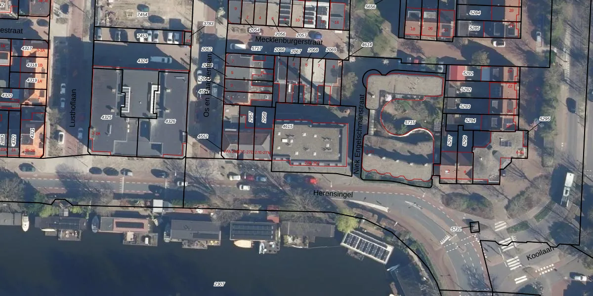 Het perceel waarop Herensingel 30-J staat heeft een oppervlakte van 627 m². Dit is een groot perceel. De perceeloppervlakte wordt geregistreerd door het Kadaster. Gedetailleerde informatie over de maten van dit perceel kunt u vinden in het rapport Kadastrale kaart met maatvoering van Herensingel 30-J.