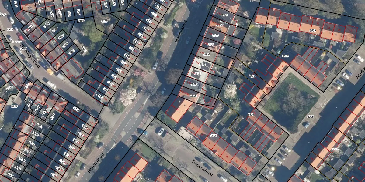 Het perceel waarop het adres ligt is LDN01-M-3608. De afkorting 'LDN01' staat voor kadastrale gemeente Leiden. De gemiddelde perceelgrootte in Leiden is 703,94 m². Dit perceel is kleiner: de perceeloppervlakte bedraagt 136 m². De grootste perceeloppervlakte in de kadastrale gemeente is 51,8 ha. De kleinste oppervlakte bedraagt 0 m². Op het perceel zijn 2 adressen aanwezig. In de Basisregistratie Kadaster (BRK) werden de grenzen van het perceel geregistreerd op 28-08-2003.