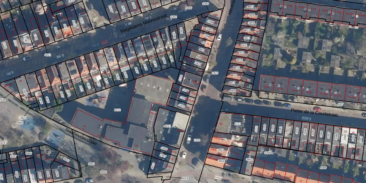 Het adres ligt op het perceel LDN01-M-1918, dat zich in de kadastrale gemeente Leiden bevindt. Het perceel is 59 m² groot. Dat is kleiner dan de gemiddelde perceeloppervlakte in Leiden, dat op 703,94 m² ligt. De grootste perceeloppervlakte in de kadastrale gemeente is 51,8 ha. De kleinste oppervlakte bedraagt 0 m². Op het perceel liggen in totaal 3 adressen. De huidige grenzen van het perceel zijn digitaal in de Basisregistratie Kadaster (BRK) geregistreerd op 28-08-2003.