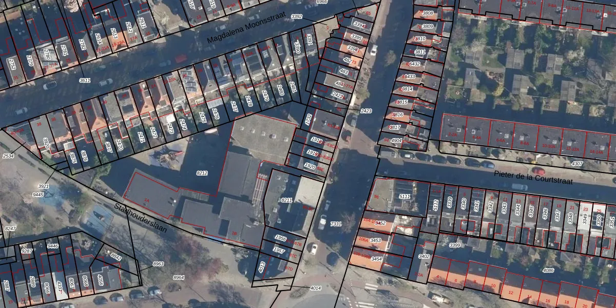 Het adres ligt op het perceel LDN01-M-1919, dat zich in de kadastrale gemeente Leiden bevindt. Het perceel is 57 m² groot. Dat is kleiner dan de gemiddelde perceeloppervlakte in Leiden, dat op 703,94 m² ligt. De grootste perceeloppervlakte in de kadastrale gemeente is 51,8 ha. De kleinste oppervlakte bedraagt 0 m². Er zijn 3 adressen aanwezig op het perceel. De huidige grenzen van het perceel zijn digitaal in de Basisregistratie Kadaster (BRK) geregistreerd op 28-08-2003.