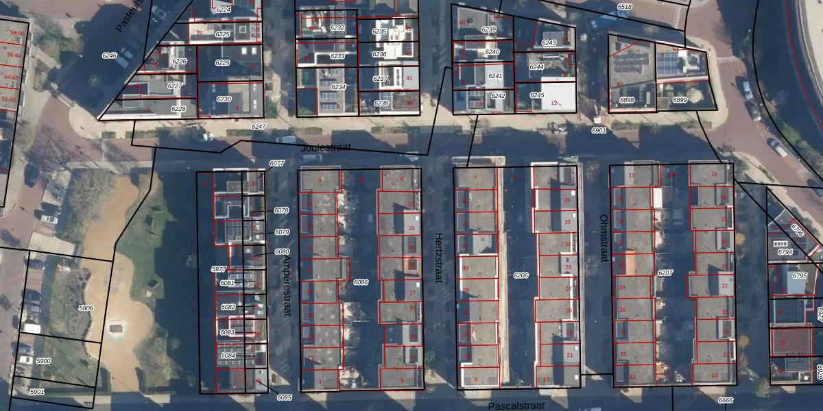 Het perceel waarop Hertzstraat 35 staat heeft een oppervlakte van 1610 m². Dit is een zeer groot perceel. De perceeloppervlakte wordt geregistreerd door het Kadaster. Gedetailleerde informatie over de maten van dit perceel kunt u vinden in het rapport Kadastrale kaart met maatvoering van Hertzstraat 35.