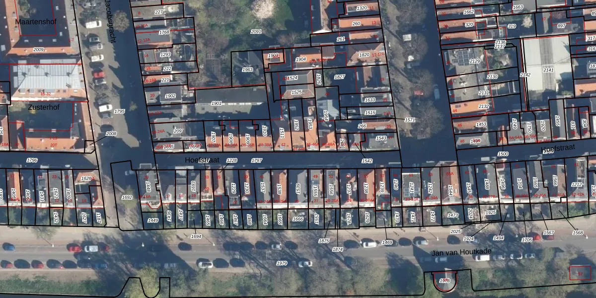 Hoefstraat 44 is gelegen op kadastraal perceel LDN01E1952. Deze kadastrale aanduiding is uniek en wordt gebruikt door het Kadaster om eigendomsrechten en andere zakelijke rechten vast te leggen. Het perceel maakt onderdeel uit van de kadastrale gemeente Leiden.