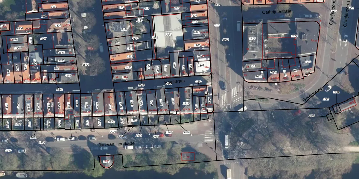 Het adres is gelegen op perceel 1212 in de sectie E en de kadastrale gemeente Leiden. De kadastrale aanduiding is aldus LDN01-E-1212. Het perceel is 148 m² groot. Dat is kleiner dan de gemiddelde perceeloppervlakte in Leiden, dat op 704,18 m² ligt. Het kleinste perceel in de kadastrale gemeente is 0 m² groot. De grootste perceeloppervlakte is 51,8 ha. Op het perceel liggen in totaal 3 adressen. De laatste wijziging in het de Basisregistratie Kadaster (BRK) was op 27-08-2003.