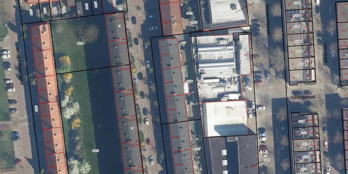 Het perceel waarop het adres ligt is LDN01-O-2636. De afkorting 'LDN01' staat voor kadastrale gemeente Leiden. Het perceel is met 1139 m² relatief groot. Het gemiddelde ligt in de kadastrale gemeente Leiden op 703,94 m². Het kleinste perceel in de kadastrale gemeente is 0 m² groot. De grootste perceeloppervlakte is 51,8 ha. Er zijn 13 adressen aanwezig op het perceel. De laatste wijziging in het de Basisregistratie Kadaster (BRK) was op 06-09-2007.