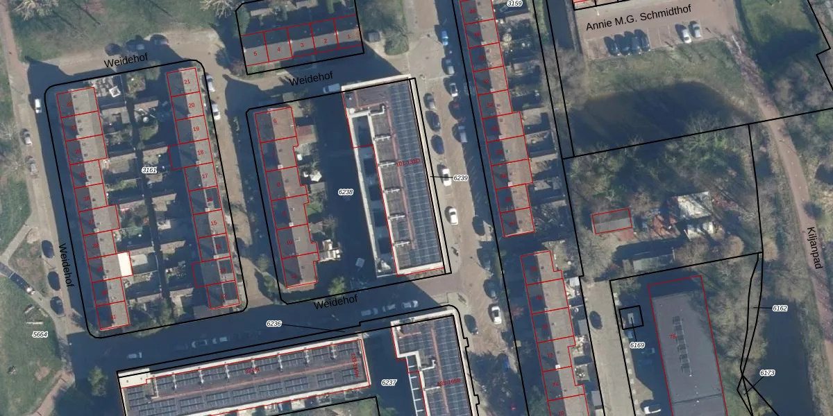Het perceel waarop het adres ligt is LDN01-O-6238. De afkorting 'LDN01' staat voor kadastrale gemeente Leiden. De oppervlakte van het perceel is 1905 m². Dat is groter dan gemiddeld in Leiden, waar de gemiddelde perceeloppervlakte op 703,94 m² ligt. Het grootste perceel in de kadastrale gemeente is 51,8 ha. Het kleinste perceel heeft een oppervlakte van 0 m². Op het perceel zijn 32 adressen aanwezig. In de Basisregistratie Kadaster (BRK) werden de grenzen van het perceel geregistreerd op 08-12-2023.
