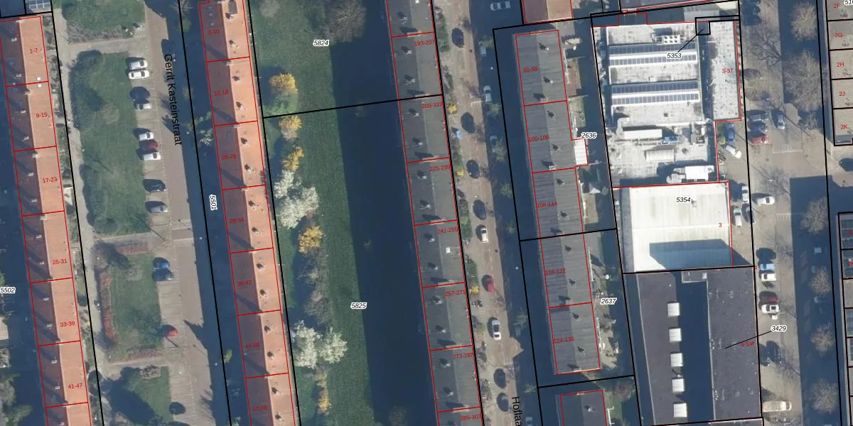 Het perceel waarop het adres ligt is LDN01-O-5825. De afkorting 'LDN01' staat voor kadastrale gemeente Leiden. Het perceel is met 3965 m² relatief groot. Het gemiddelde ligt in de kadastrale gemeente Leiden op 703,94 m². Het grootste perceel in de kadastrale gemeente is 51,8 ha. Het kleinste perceel heeft een oppervlakte van 0 m². Er zijn 48 adressen aanwezig op het perceel. De laatste wijziging in het de Basisregistratie Kadaster (BRK) was op 28-04-2015.