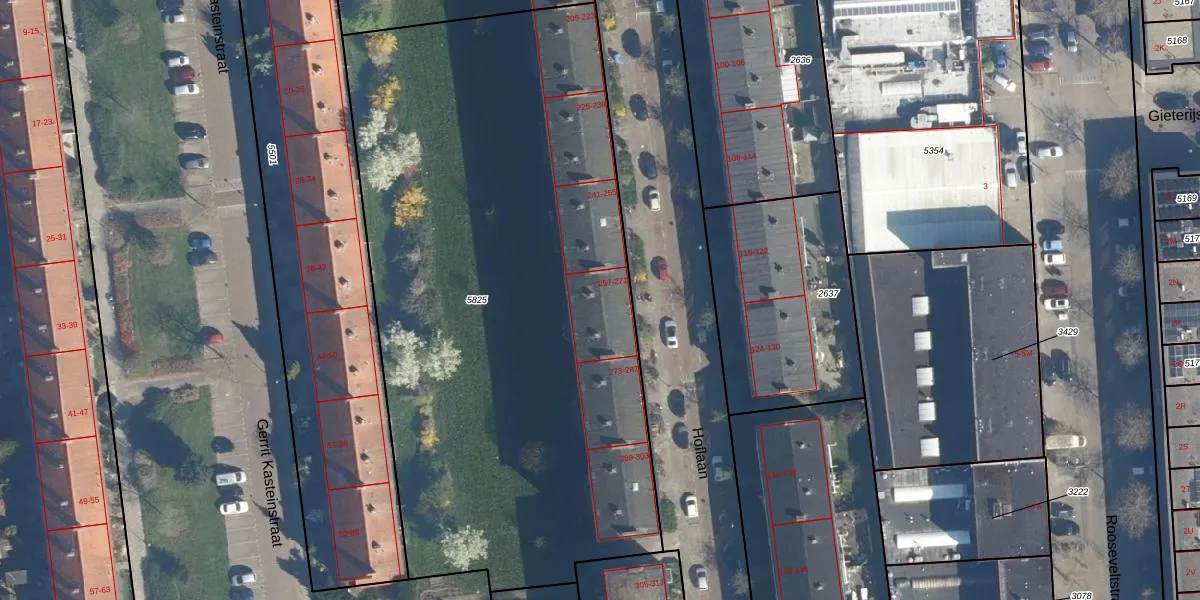 Het perceel waarop het adres ligt is LDN01-O-5825. De afkorting 'LDN01' staat voor kadastrale gemeente Leiden. Het perceel is met 3965 m² relatief groot. Het gemiddelde ligt in de kadastrale gemeente Leiden op 703,94 m². Het grootste perceel in de kadastrale gemeente is 51,8 ha. Het kleinste perceel heeft een oppervlakte van 0 m². Op het perceel zijn 48 adressen aanwezig. De huidige grenzen van het perceel zijn digitaal in de Basisregistratie Kadaster (BRK) geregistreerd op 28-04-2015.