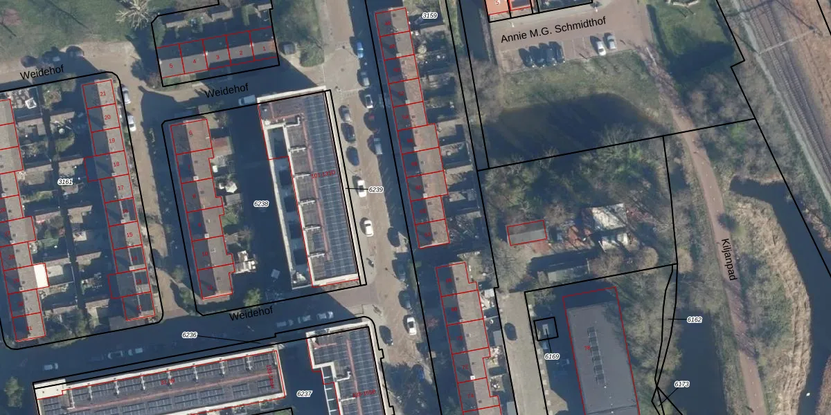 Het perceel waarop het adres ligt is LDN01-O-3159. De afkorting 'LDN01' staat voor kadastrale gemeente Leiden. Het perceel is met 2920 m² relatief groot. Het gemiddelde ligt in de kadastrale gemeente Leiden op 703,94 m². Het kleinste perceel in de kadastrale gemeente is 0 m² groot. De grootste perceeloppervlakte is 51,8 ha. Er zijn 22 adressen aanwezig op het perceel. In de Basisregistratie Kadaster (BRK) werden de grenzen van het perceel geregistreerd op 17-11-2003.
