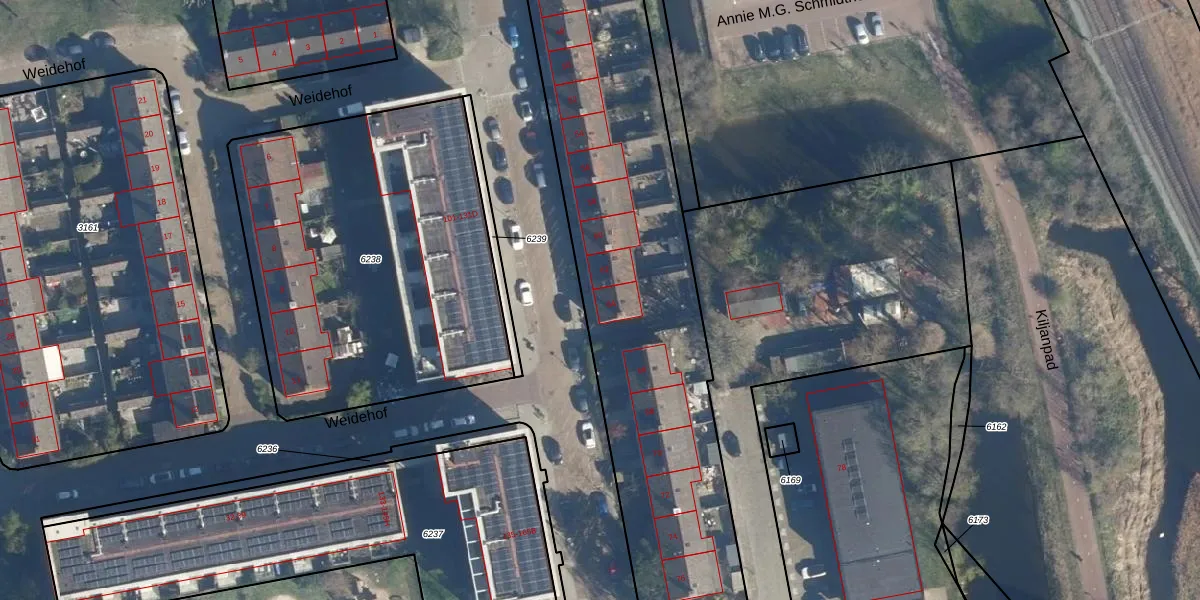 Het perceel waarop het adres ligt is LDN01-O-3159. De afkorting 'LDN01' staat voor kadastrale gemeente Leiden. Het perceel is met 2920 m² relatief groot. Het gemiddelde ligt in de kadastrale gemeente Leiden op 703,94 m². Het kleinste perceel in de kadastrale gemeente is 0 m² groot. De grootste perceeloppervlakte is 51,8 ha. Op het perceel zijn 22 adressen aanwezig. De huidige grenzen van het perceel zijn digitaal in de Basisregistratie Kadaster (BRK) geregistreerd op 17-11-2003.